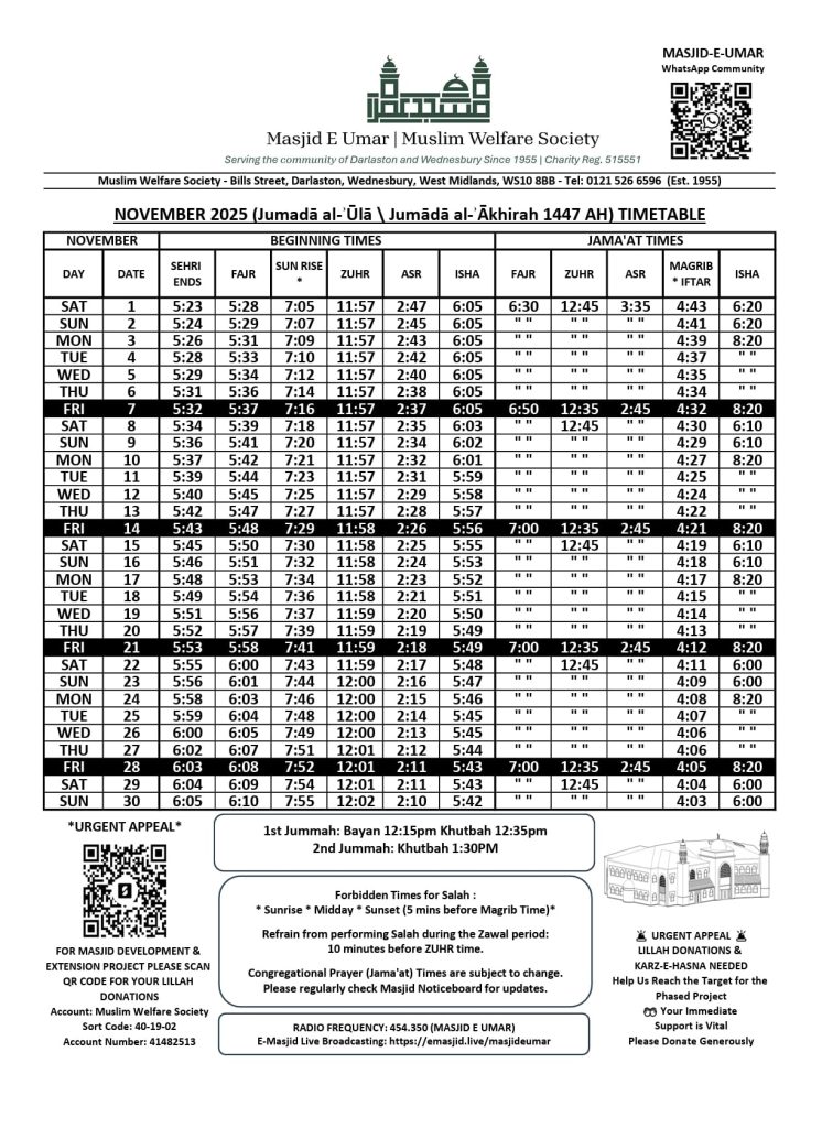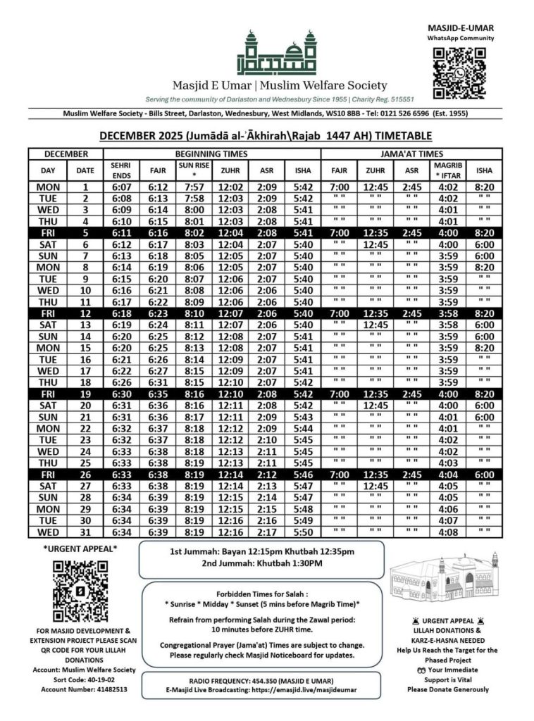 Important Notice for Attendees at, Masjid-E-Umar, Darlaston.